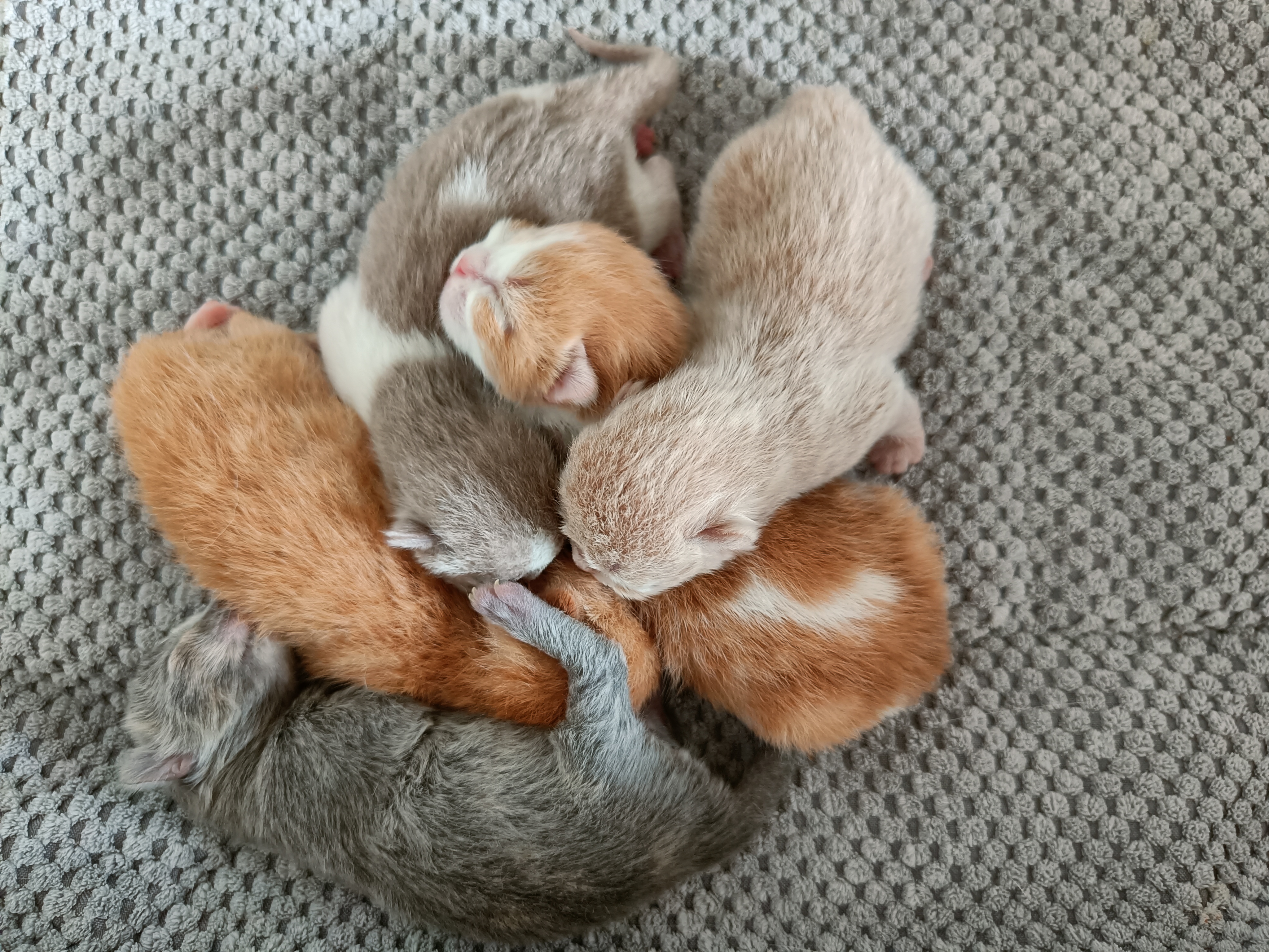 Op vrijdag 14 april is Lucie bevallen van 6 kittens. Helaas had het eerste kitten een waterhoofdje en was het al overleden toen het geboren werd. De andere 5 kittens zijn gelukkig wel gezond en doen het heel goed dankzij de geweldige zorgen van mama Lucie.
